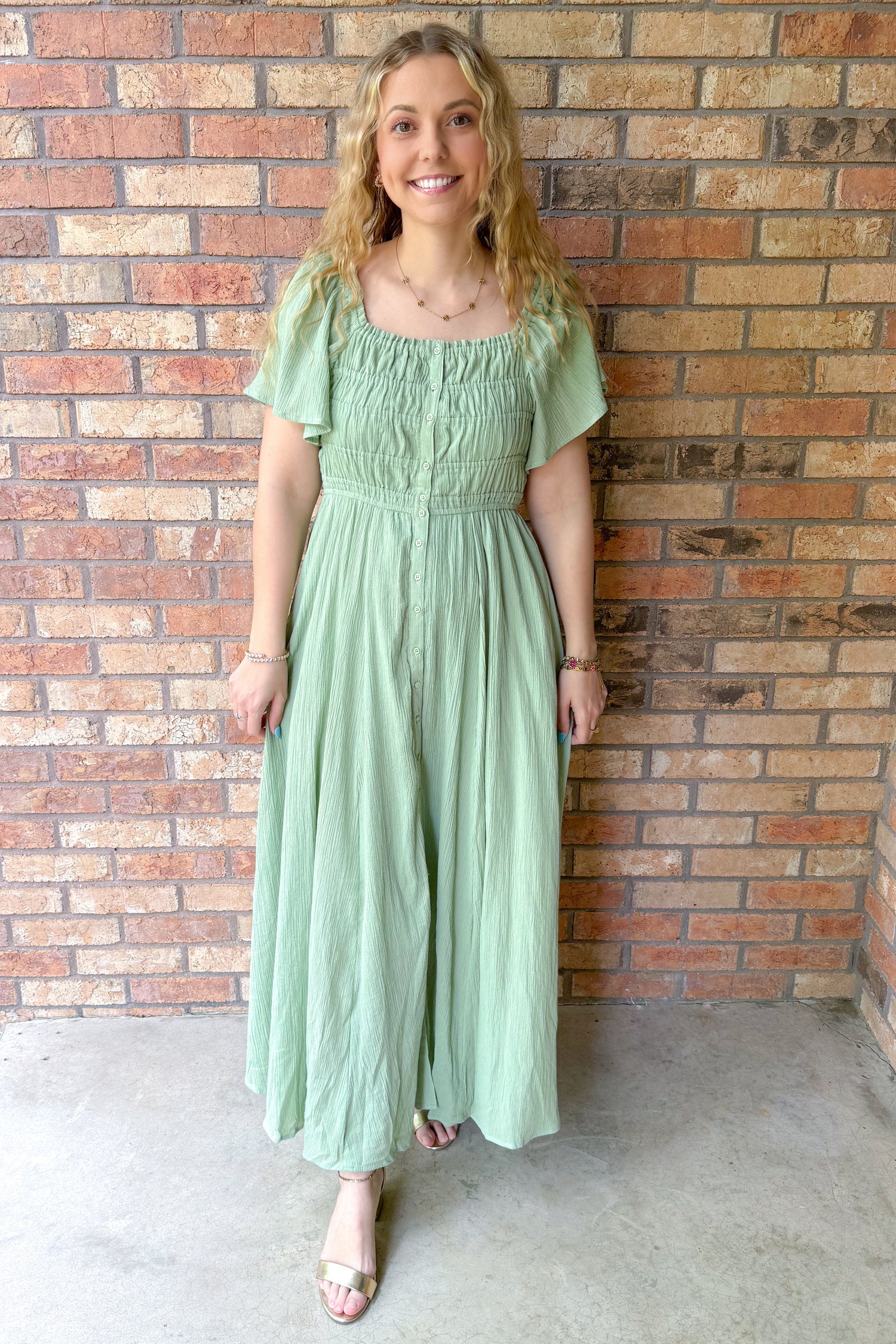 Finding Happiness Gathered Square Neck Maxi Dress, Mocha Mousse