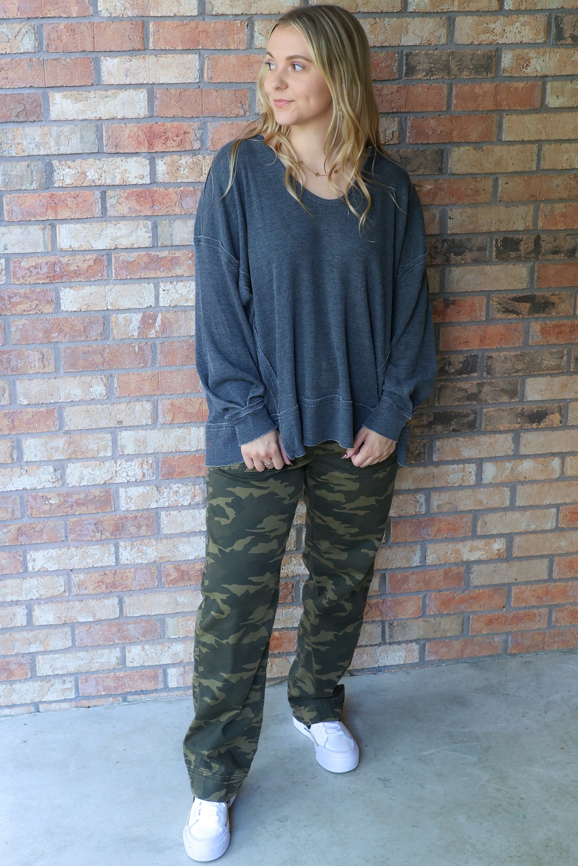 Embrace effortless style with our Oversized Waffle-Knit Distressed Long Sleeve. This piece features a unique mineral wash and raw edges at the seam lines for an edgy, worn-in look. The slits at the hem create a flowy, relaxed fit, while inverted pleats at the sleeve cuffs add fullness, giving the sleeves a subtle yet stylish volume. Perfect for layering or wearing on its own, this top is a go-to for those who love a blend of comfort and fashion-forward design.