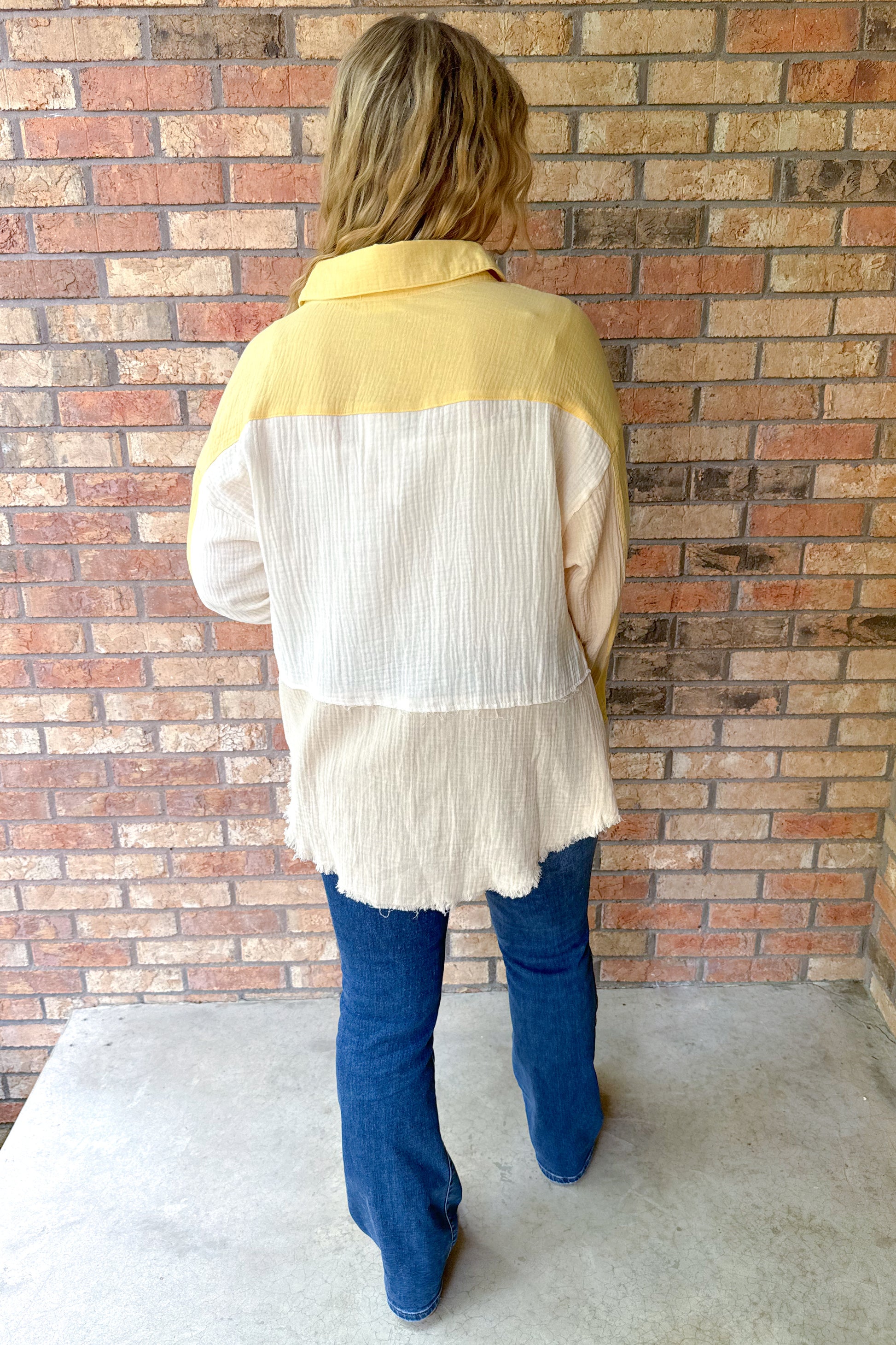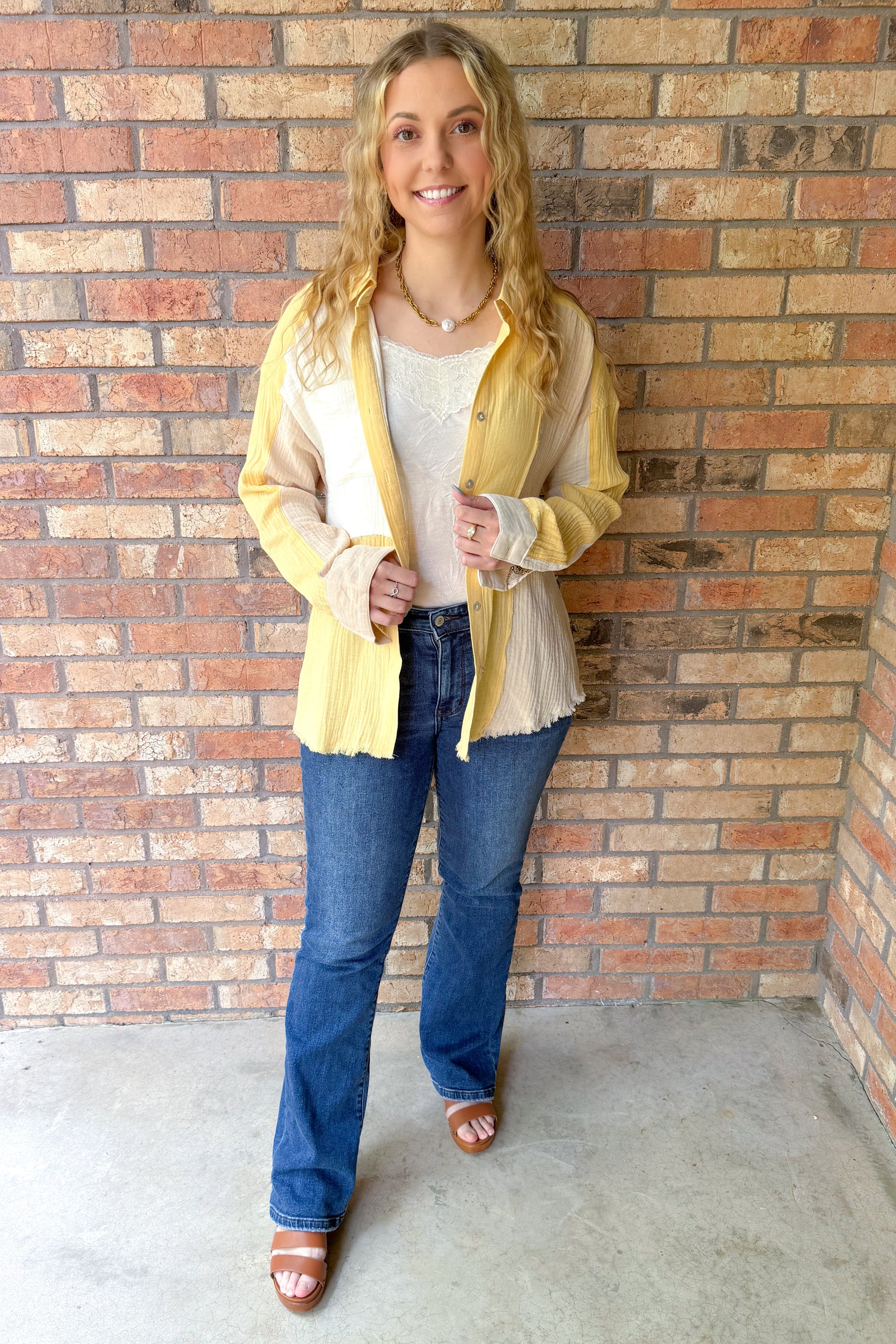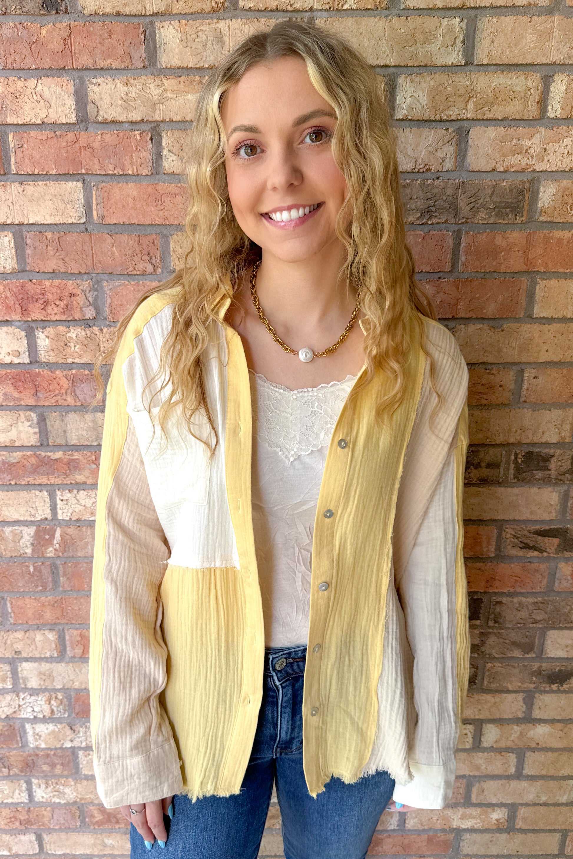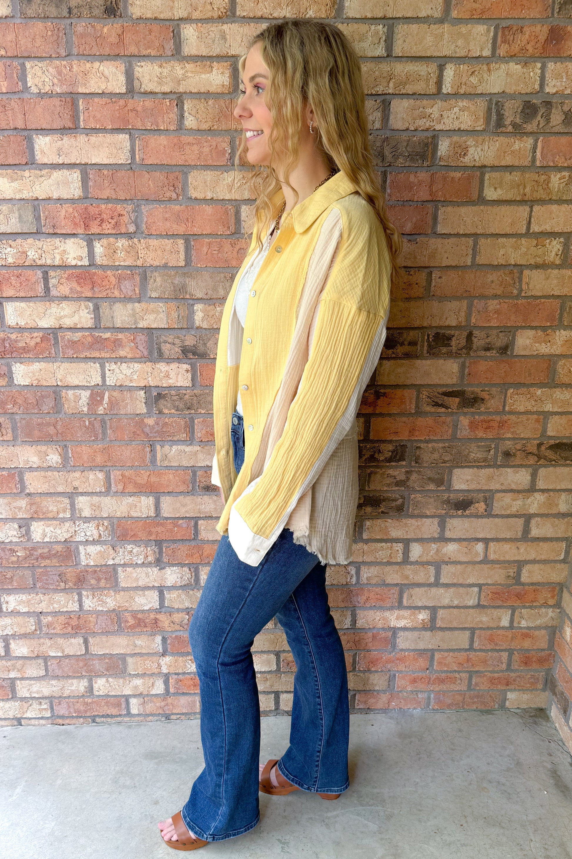 Overcome With Joy Color Blocked Button Down Shirt, Yellow Mix